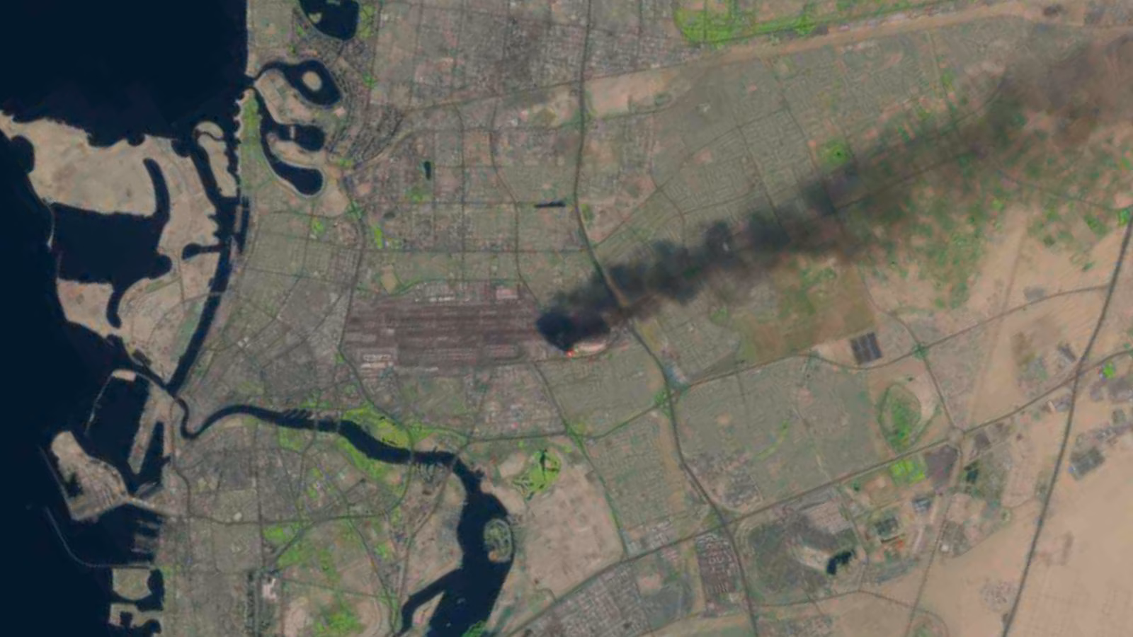 Dubai, Abu Dhabi Information Dwell Updates: Satellite tv for pc picture taken by a U.S. Geological Survey Landsat satellite tv for pc exhibits the fireplace after an Iranian drone assault focusing on the Dubai Worldwide Airport in Dubai, United Arab Emirates, Monday, March 16, 2026. (U.S. Geological Survey through AP)